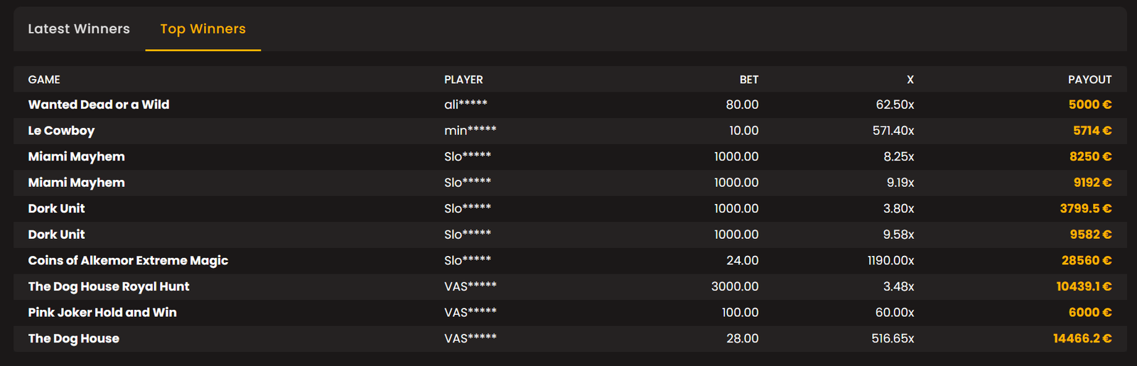- Exceptional Gamification & Tournaments – Tournament infrastructure with substantial prize pools (up to €400,000); challenges section; leaderboards; provider-based slot races; seasonal events.
